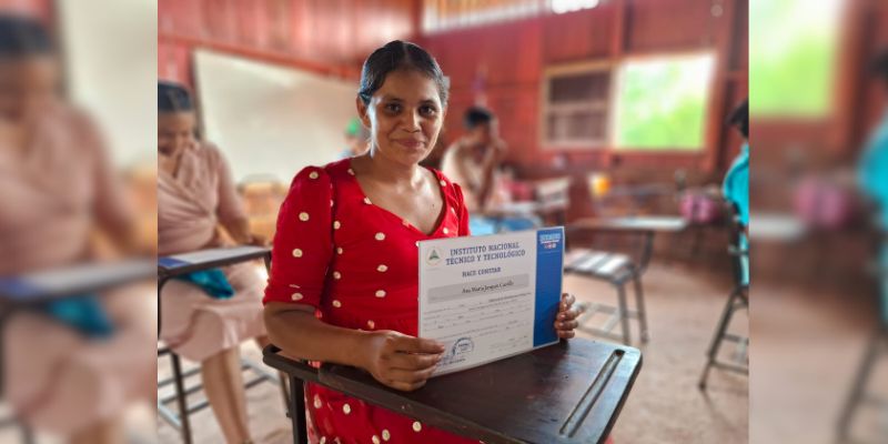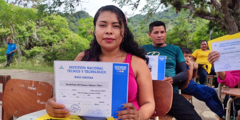 En la comunidad El Zapote #2 de Somoto, la joven madre Guadalupe Polanco levantaba orgullosa su diploma. “Yo más o menos escribo, pero no sabía bien cómo poner un nombre o escribir bien”, contó. Gracias al acompañamiento de su maestra Lidia, hoy no solo escribe con confianza, sino que también comparte valores y buenos hábitos con sus hijos. “Es una oportunidad que nos ha dado en este día de recibir por primera vez un diploma”, dijo emocionada, convencida de que la maternidad no es un obstáculo para seguir soñando.