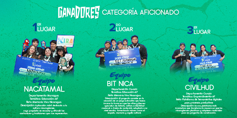 Otra de las mentes creativas premiadas fue Priscila Castillo, del equipo Nacatamal, ganadores del primer lugar en la categoría Aficionado. Ella explicó que su aplicación “busca conectar a los jóvenes nicaragüenses con su cultura, tradiciones e historia mediante mapas, juegos y actividades interactivas”.