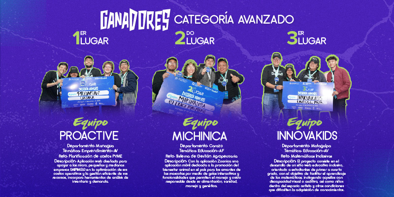 El momento más esperado llegó con la premiación. El equipo ProActive obtuvo el primer lugar en la categoría Avanzado. Max Orellana, uno de sus integrantes, destacó que la clave del éxito fue el trabajo en equipo: