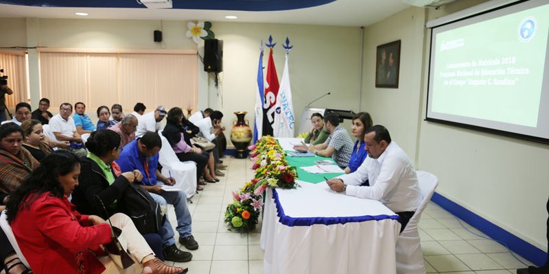 En ocasión a la conmemoración del 84 aniversario del paso a la inmortalidad del héroe nacional Augusto C. Sandino, el INATEC realiza el Lanzamiento de Matrícula 2018 del Programa Nacional de Educación Técnica en el Campo, Augusto C. Sandino. En modalidad de escuelas de emprendimiento, cursos libres, especializaciones y tecnológicas de campo.