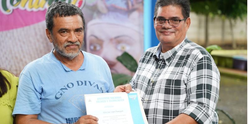 En homenaje al natalicio y paso a la inmortalidad del General Benjamín Zeledón, el Centro Tecnológico Camilo Ortega Saavedra celebró la entrega de certificados a 98 protagonistas del programa “Emprendedores y Artesanos de Monimbó”, que impulsa el gobierno a través del Tecnológico Nacional (INATEC) en coordinación con otras instituciones locales.